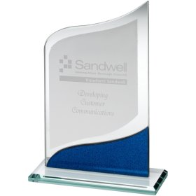 Jade Glass Pointed Plaque With Blue Silver Detail